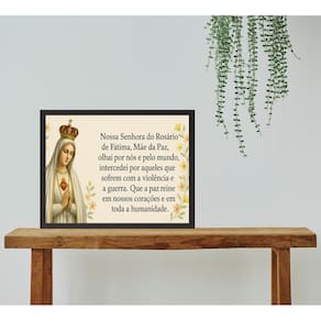 Quadro Nossa Senhora De Fátima Do Rosário - Oração 33x24cm - Cor: Moldura branca
