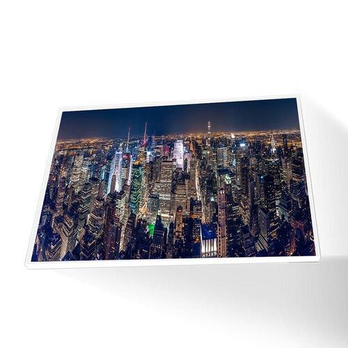 Quadro Nova York Noturno Canvas Com Vidro Tamanho/moldura 60x40 Caixa Cor Branca Nossos quadros e imagens são de alta qualidade e definição, feitas com dedicação, cuidado e muito carinho e são exatamente iguais aos da foto. (Imagens são meramente ilustrativas).