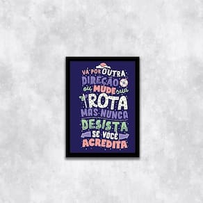 Quadro Nunca Desista Se Você Acredita 24X18Cm Moldura: madeira branca Informações do produto Decoração para quarto, sala, cozinha, escritório, área gourmet e muito mais. Chega de paredes vazias. Medidas - cada peça tem 24x18cm a5 . Material do papel - papel fotográfico brilhante de altíssima resolução Acabamento - todos os quadros são acompanhados de uma película de acetato para proteção da imagem. - moldura em madeira maciça na cor branca e pendurador móvel que pode ser retirado facilmente caso deseje fixar com fita dupla face. - os quadros são embalados de forma segura com plástico bolha com camada dupla de acordo com o tamanho dos quadros. - de 3 meses Meu quadro chegou. Como posso fixá-lo: Você precisa apenas de um martelo e um prego, pois os quadros já vão acompanhados de penduradores. Esta é a forma mais indicada. Caso prefira, você pode utilizar uma fita dupla face neste caso, sugerimos de alta qualidade para evitar que descole e seu quadro caia . Como posso limpar meu quadro: A limpeza é feita como um móvel comum da sua casa. Apenas um pano seco ou espanador são suficientes para tal Marca: Não Informado