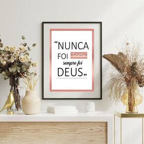 Quadro nunca foi sorte foi deus rosê - 60x48cm Moldura: madeira branca Informações do produto tire todas as suas dúvidas no descritivo abaixo: decoração para quarto, sala, cozinha, escritório, área gourmet e muito mais. Chega de paredes vazias medidas - cada peça tem 60x48cm . Material do papel - papel fotográfico brilhante de altíssima resolução acabamento - todos os quadros são acompanhados de vidro para proteção da imagem. - moldura em madeira maciça na cor preta ou branca conforme produto escolhido e pendurador. - paspatur branco com 7cm de largura - os quadros são embalados de forma segura com plástico bolha com camada dupla de acordo com o tamanho dos quadros. Garantia - garantia de 3 meses. Meu quadro chegou. Como posso fixá-lo Você precisa apenas de um martelo e um prego, pois os quadros já vão acompanhados de penduradores. Esta é a forma mais indicada. Como posso limpar meu quadro A limpeza é feita como um móvel comum da sua casa. Apenas um pano seco ou espanador são suficientes para tal