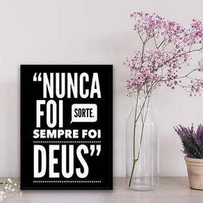 Quadro nunca foi sorte sempre foi deus 33x24cm - com vidro Moldura: madeira branca Informações do produto tire todas as suas dúvidas no descritivo abaixo: decoração para quarto, sala, cozinha, escritório, área gourmet e muito mais. Chega de paredes vazias medidas - cada peça tem 33x24cm a4 . Material do papel - papel fotográfico brilhante de altíssima resolução acabamento - todos os quadros são acompanhados de vidro para proteção da imagem. - moldura em madeira maciça na cor preta e pendurador . - os quadros são embalados de forma segura com plástico bolha com camada dupla de acordo com o tamanho dos quadros. Garantia - garantia de 3 meses. Meu quadro chegou. Como posso fixá-lo Você precisa apenas de um martelo e um prego, pois os quadros já vão acompanhados de penduradores. Esta é a forma mais indicada. Como posso limpar meu quadro A limpeza é feita como um móvel comum da sua casa. Apenas um pano seco ou espanador são suficientes para tal Ean: 7893555722458