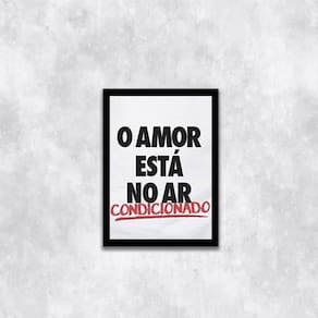 Quadro o amor está no ar condicionado 33x24cm - com vidro Moldura: madeira preta Informações do produto tire todas as suas dúvidas no descritivo abaixo: decoração para quarto, sala, cozinha, escritório, área gourmet e muito mais. Chega de paredes vazias medidas - cada peça tem 33x24cm a4 . Material do papel - papel fotográfico brilhante de altíssima resolução acabamento - todos os quadros são acompanhados de vidro para proteção da imagem. - moldura em madeira maciça na cor preta e pendurador . - os quadros são embalados de forma segura com plástico bolha com camada dupla de acordo com o tamanho dos quadros. Garantia - garantia de 3 meses. Meu quadro chegou. Como posso fixá-lo Você precisa apenas de um martelo e um prego, pois os quadros já vão acompanhados de penduradores. Esta é a forma mais indicada. Como posso limpar meu quadro A limpeza é feita como um móvel comum da sua casa. Apenas um pano seco ou espanador são suficientes para tal Ean: 7895142222907