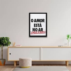 Quadro o amor está no ar condicionado 33x24cm - com vidro Moldura: madeira preta Informações do produto tire todas as suas dúvidas no descritivo abaixo: decoração para quarto, sala, cozinha, escritório, área gourmet e muito mais. Chega de paredes vazias medidas - cada peça tem 33x24cm a4 . Material do papel - papel fotográfico brilhante de altíssima resolução acabamento - todos os quadros são acompanhados de vidro para proteção da imagem. - moldura em madeira maciça na cor preta e pendurador . - os quadros são embalados de forma segura com plástico bolha com camada dupla de acordo com o tamanho dos quadros. Garantia - garantia de 3 meses. Meu quadro chegou. Como posso fixá-lo Você precisa apenas de um martelo e um prego, pois os quadros já vão acompanhados de penduradores. Esta é a forma mais indicada. Como posso limpar meu quadro A limpeza é feita como um móvel comum da sua casa. Apenas um pano seco ou espanador são suficientes para tal Ean: 7895142222907