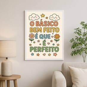 Quadro O Básico Bem Feito é Que é Perfeito 33x24cm - Cor: Moldura branca