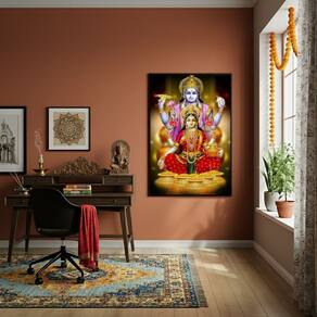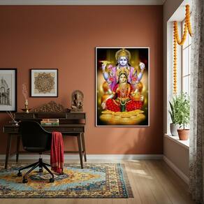 Quadro O Deus Hindu Vixnu e A Deusa Lakshmi - 70x50cm - Cor: Moldura Preta