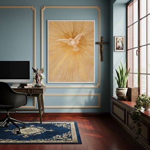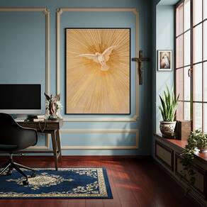 Quadro O Espírito Santo - Símbolo da Paz e Pureza - 70x50cm - Cor: Moldura Branca