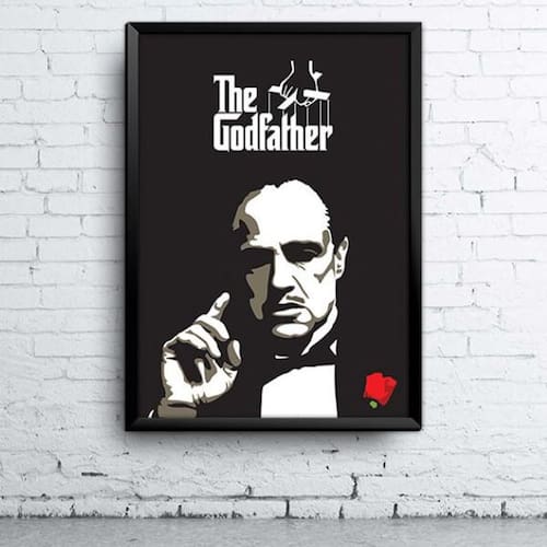Quadro O Poderoso Chefão A4 Quadro com moldura em madeira. Fita dupla face para pendurar sem sujeira. Este produto é a opção ideal para quem deseja comodidade na hora de decorar. informações do produto Moldura com 2cm de largura em madeira pinus com excelente acabamento fosco e arte impressa em vinil fosco alta durabilidade. Acompanha fita dupla face já instalada para pendurar a moldura e embalagem protetora com cantoneiras que evitam danos durante o transporte. Opções de formatos A4: gravuras no tamanho 21x30cm - medida externa: 24x33cm Prazo de produção: 03 a 05 dias úteis após aprovação do pagamento. As cores podem ter pequenas variações em relação a imagem do seu monitor. As medidas podem sofrer mínimas variações. Marca: Sdesign Ean: 7898694731408