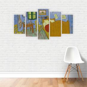 Quadro O Quarto Van Gogh Arte Canvas 155X80Cm TAMANHO: Conjunto de 5 quadros conjugados com imagem em continuidade com medida total de 1,55mx0,80m sendo: 2 quadros de 30x50cm; 2 quadros de 30x65cm; 1 quadros de 30x80cm; Acompanha Manual com Dicas de Instalação. CANVAS: Sua experiência com esse material será inesquecível. Você pode achar que não conhece tecido canvas, mas com certeza já deve ter visto um quadro em tela, como uma pintura ou em um museu, pois o mesmo é utilizado para as mais belas pinturas. O tecido canvas é um material 100% algodão com preparação especial, tratamento anti bacteriano, antimofo e verniz semibrilho, apropriada para a impressão. CHASSI madeira : É a estrutura de madeira eucalipto beneficiado de reflorestamento onde o tecido impresso é esticado cuidadosamente. A melhor estrutura para quadros e telas Com madeira de 3x2,3cm de espessura, chanfrada para não marcar a parte frontal de sua tela, é grampeada pelo verso dando um acabamento especial, onde suas imagens aparecem até mesmo na volta da madeira Assim seu quadro chega pronto para pendurar e não necessita de moldura EMBALAGEM: Feita cuidadosamente envolvendo as peças com filme stretch pvc, para que diminua quase a zero as chances de marcar de alguma maneira seu quadro no transporte. O mesmo é colocado em uma caixa feita especialmente para o seu tamanho de quadro, assim seu quadro fica bem mais firme dentro da embalagem. Marca: Não Informado