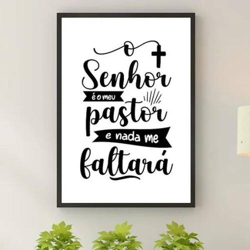 Quadro o senhor é meu pastor - minimalista 45x34cm - com vidro Cor: moldura branca Informações do produto tire todas as suas dúvidas no descritivo abaixo: decoração para quarto, sala, cozinha, escritório, área gourmet e muito mais. Chega de paredes vazias medidas - cada peça tem 45x34cm a3 . Material do papel - papel fotográfico brilhante de altíssima resolução acabamento - todos os quadros são acompanhados de vidro para proteção da imagem. - moldura em madeira maciça na cor preta ou branca conforme produto escolhido e pendurador . - os quadros são embalados de forma segura com plástico bolha com camada dupla de acordo com o tamanho dos quadros. - de 3 meses. Meu quadro chegou. Como posso fixá-lo Você precisa apenas de um martelo e um prego, pois os quadros já vão acompanhados de penduradores. Esta é a forma mais indicada. Como posso limpar meu quadro A limpeza é feita como um móvel comum da sua casa. Apenas um pano seco ou espanador são suficientes para tal Marca: Não Informado