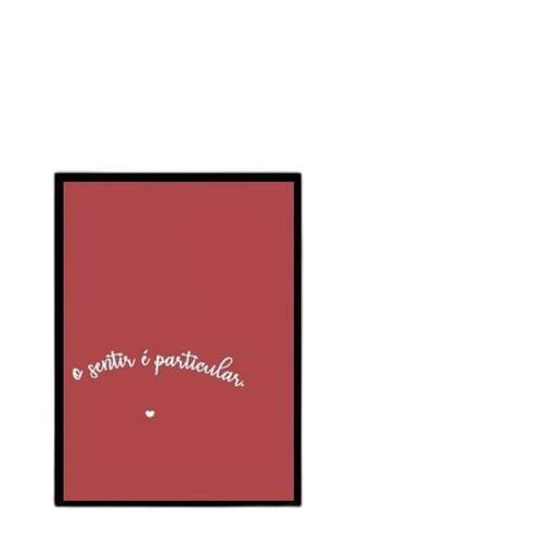 Quadro o sentir é particular 24x18cm Moldura: madeira preta Informações do produto Decoração para quarto, sala, cozinha, escritório, área gourmet e muito mais. Chega de paredes vazias Medidas - cada peça tem 24x18cm a5 . Material do papel - papel fotográfico brilhante de altíssima resolução Acabamento - todos os quadros são acompanhados de uma película de acetato para proteção da imagem. - os quadros são embalados de forma segura com plástico bolha com camada dupla de acordo com o tamanho dos quadros. - de 3 meses. Meu quadro chegou. Como posso fixá-lo Você precisa apenas de um martelo e um prego, pois os quadros já vão acompanhados de penduradores. Esta é a forma mais indicada. Caso prefira, você pode utilizar uma fita dupla face neste caso, sugerimos de alta qualidade para evitar que descole e seu quadro caia . Como posso limpar meu quadro A limpeza é feita como um móvel comum da sua casa. Apenas um pano seco ou espanador são suficientes para tal Marca: Não Informado Ean: 7897928141280
