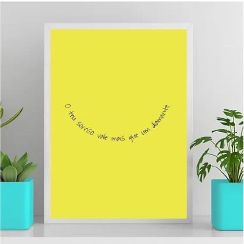 Quadro o teu sorriso vale mais que diamante 45x34cm Moldura: madeira branca