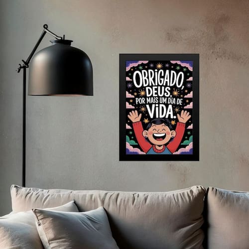 Quadro obrigado deus pela vida 24x18cm Cor: moldura branca Informações do produto tire todas as suas dúvidas no descritivo abaixo: decoração para quarto, sala, cozinha, escritório, área gourmet e muito mais. Chega de paredes vazias medidas - cada peça tem 24x18cm a5 . Material do papel - papel fotográfico brilhante de altíssima resolução acabamento - todos os quadros são acompanhados de uma película de acetato para proteção da imagem. - os quadros são embalados de forma segura com plástico bolha com camada dupla de acordo com o tamanho dos quadros. - de 3 meses. Meu quadro chegou. Como posso fixá-lo Você precisa apenas de um martelo e um prego, pois os quadros já vão acompanhados de penduradores. Esta é a forma mais indicada. Caso prefira, você pode utilizar uma fita dupla face neste caso, sugerimos de alta qualidade para evitar que descole e seu quadro caia . Como posso limpar meu quadro A limpeza é feita como um móvel comum da sua casa. Apenas um pano seco ou espanador são suficientes para tal Marca: Não Informado