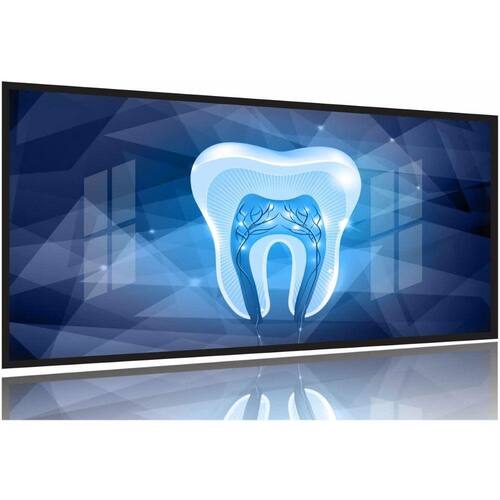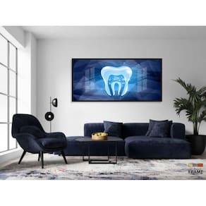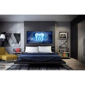 Quadro Odontologia Dentista Dente Estilizado Azul 130x60 Moldura Preta 2x2