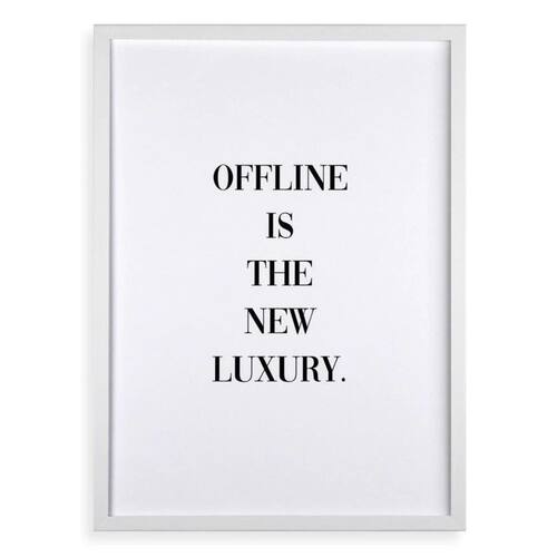 Quadro offline is the new luxury 45x34cm Cor: moldura branca Informações do produto tire todas as suas dúvidas no descritivo abaixo: decoração para quarto, sala, cozinha, escritório, área gourmet e muito mais. Chega de paredes vazias. Medidas - cada peça tem 45x34cm a3 . Material do papel - papel fotográfico brilhante de altíssima resolução acabamento - todos os quadros são acompanhados de uma película de acetato para proteção da imagem. - os quadros são embalados de forma segura com plástico bolha com camada dupla de acordo com o tamanho dos quadros. - de 3 meses. Meu quadro chegou. Como posso fixá-lo Você precisa apenas de um martelo e um prego, pois os quadros já vão acompanhados de penduradores. Esta é a forma mais indicada. Caso prefira, você pode utilizar uma fita dupla face neste caso, sugerimos de alta qualidade para evitar que descole e seu quadro caia . Como posso limpar meu quadro A limpeza é feita como um móvel comum da sua casa. Apenas um pano seco ou espanador são suficientes para tal Marca: Não Informado