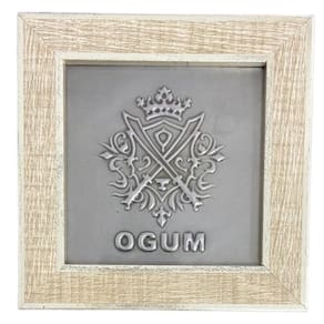 Quadro Ogum Orixá Madeira Carvalho e Metal 13 x13 cm