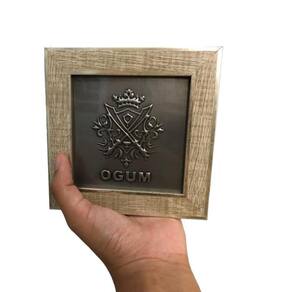 Quadro Ogum Orixá Madeira Carvalho e Metal 13 x13 cm Quadro Ogum Orixá Madeira Carvalho e Metal 13 x13 cm