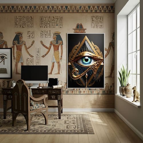 Quadro Olho de Hórus - Antigo Símbolo Egípcio - 70x50cm - Cor: Moldura Preta