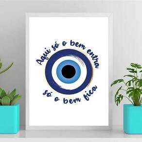 Quadro olho grego só o bem entra 33x24cm - com vidro Moldura: madeira branca Informações do produto tire todas as suas dúvidas no descritivo abaixo: decoração para quarto, sala, cozinha, escritório, área gourmet e muito mais. Chega de paredes vazias medidas - cada peça tem 33x24cm a4 . Material do papel - papel fotográfico brilhante de altíssima resolução acabamento - todos os quadros são acompanhados de vidro para proteção da imagem. - moldura em madeira maciça na cor preta e pendurador . - os quadros são embalados de forma segura com plástico bolha com camada dupla de acordo com o tamanho dos quadros. Garantia - garantia de 3 meses. Meu quadro chegou. Como posso fixá-lo Você precisa apenas de um martelo e um prego, pois os quadros já vão acompanhados de penduradores. Esta é a forma mais indicada. Como posso limpar meu quadro A limpeza é feita como um móvel comum da sua casa. Apenas um pano seco ou espanador são suficientes para tal