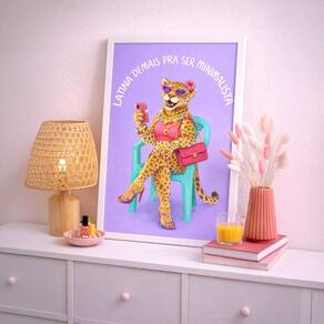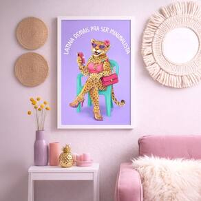 Quadro Onça Latina Demais Minimalista 24x18cm Mold Branca Vidro