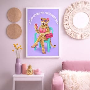 Quadro Onça Latina Demais Minimalista 45x34cm Mold Branca