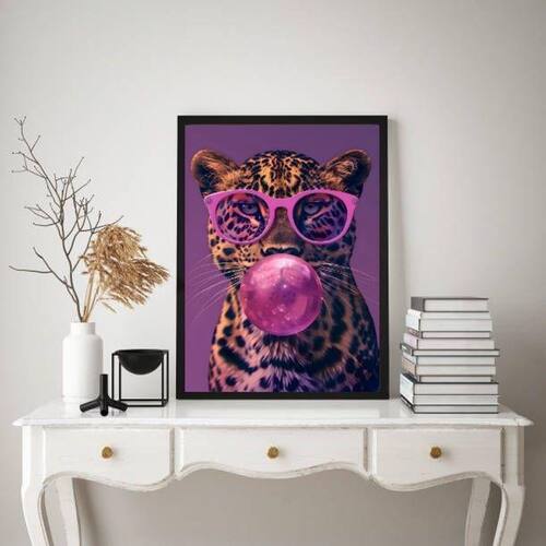 Quadro onça rosa roxo bubble gum 45x34cm - com vidro Cor: moldura preta Informações do produto tire todas as suas dúvidas no descritivo abaixo: decoração para quarto, sala, cozinha, escritório, área gourmet e muito mais. Chega de paredes vazias medidas - cada peça tem 45x34cm a3 . Material do papel - papel fotográfico brilhante de altíssima resolução acabamento - todos os quadros são acompanhados de vidro para proteção da imagem. - moldura em madeira maciça na cor preta ou branca conforme produto escolhido e pendurador . - os quadros são embalados de forma segura com plástico bolha com camada dupla de acordo com o tamanho dos quadros. - de 3 meses. Meu quadro chegou. Como posso fixá-lo Você precisa apenas de um martelo e um prego, pois os quadros já vão acompanhados de penduradores. Esta é a forma mais indicada. Como posso limpar meu quadro A limpeza é feita como um móvel comum da sua casa. Apenas um pano seco ou espanador são suficientes para tal Ean: 7901039752287