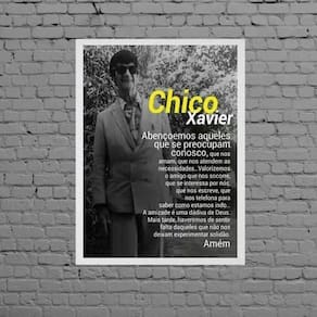 Quadro oração chico xavier 33x24cm - com vidro Moldura: madeira branca Informações do produto tire todas as suas dúvidas no descritivo abaixo: decoração para quarto, sala, cozinha, escritório, área gourmet e muito mais. Chega de paredes vazias medidas - cada peça tem 33x24cm a4 . Material do papel - papel fotográfico brilhante de altíssima resolução acabamento - todos os quadros são acompanhados de vidro para proteção da imagem. - moldura em madeira maciça na cor preta e pendurador . - os quadros são embalados de forma segura com plástico bolha com camada dupla de acordo com o tamanho dos quadros. Garantia - garantia de 3 meses. Meu quadro chegou. Como posso fixá-lo Você precisa apenas de um martelo e um prego, pois os quadros já vão acompanhados de penduradores. Esta é a forma mais indicada. Como posso limpar meu quadro A limpeza é feita como um móvel comum da sua casa. Apenas um pano seco ou espanador são suficientes para tal