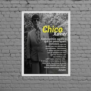 Quadro oração chico xavier 33x24cm - com vidro Moldura: madeira preta Informações do produto tire todas as suas dúvidas no descritivo abaixo: decoração para quarto, sala, cozinha, escritório, área gourmet e muito mais. Chega de paredes vazias medidas - cada peça tem 33x24cm a4 . Material do papel - papel fotográfico brilhante de altíssima resolução acabamento - todos os quadros são acompanhados de vidro para proteção da imagem. - moldura em madeira maciça na cor preta e pendurador . - os quadros são embalados de forma segura com plástico bolha com camada dupla de acordo com o tamanho dos quadros. - de 3 meses. Meu quadro chegou. Como posso fixá-lo Você precisa apenas de um martelo e um prego, pois os quadros já vão acompanhados de penduradores. Esta é a forma mais indicada. Como posso limpar meu quadro A limpeza é feita como um móvel comum da sua casa. Apenas um pano seco ou espanador são suficientes para tal