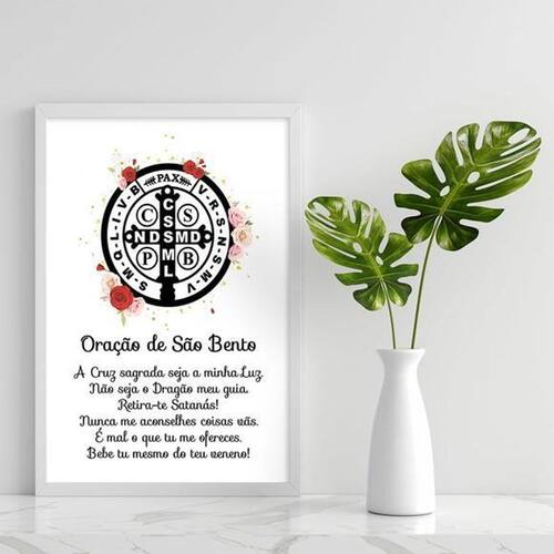 Quadro oração de são bento 45x34cm Moldura: madeira branca Informações do produto tire todas as suas dúvidas no descritivo abaixo: decoração para quarto, sala, cozinha, escritório, área gourmet e muito mais. Chega de paredes vazias medidas - cada peça tem 45x34cm a3 . Material do papel - papel fotográfico brilhante de altíssima resolução acabamento - todos os quadros são acompanhados de uma película de acetato para proteção da imagem. - os quadros são embalados de forma segura com plástico bolha com camada dupla de acordo com o tamanho dos quadros. - de 3 meses. Meu quadro chegou. Como posso fixá-lo Você precisa apenas de um martelo e um prego, pois os quadros já vão acompanhados de penduradores. Esta é a forma mais indicada. Caso prefira, você pode utilizar uma fita dupla face neste caso, sugerimos de alta qualidade para evitar que descole e seu quadro caia . Como posso limpar meu quadro A limpeza é feita como um móvel comum da sua casa. Apenas um pano seco ou espanador são suficientes para tal Marca: Não Informado