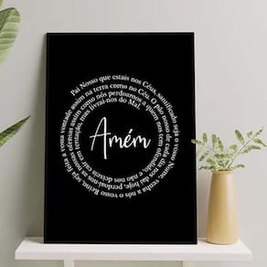 Quadro oração pai nosso espiral - preto e branco 45x34cm - com vidro Moldura: madeira branca Informações do produto tire todas as suas dúvidas no descritivo abaixo: decoração para quarto, sala, cozinha, escritório, área gourmet e muito mais. Chega de paredes vazias medidas - cada peça tem 45x34cm a3 . Material do papel - papel fotográfico brilhante de altíssima resolução acabamento - todos os quadros são acompanhados de vidro para proteção da imagem. - moldura em madeira maciça na cor preta ou branca conforme produto escolhido e pendurador . - os quadros são embalados de forma segura com plástico bolha com camada dupla de acordo com o tamanho dos quadros. Garantia - garantia de 3 meses. Meu quadro chegou. Como posso fixá-lo Você precisa apenas de um martelo e um prego, pois os quadros já vão acompanhados de penduradores. Esta é a forma mais indicada. Como posso limpar meu quadro A limpeza é feita como um móvel comum da sua casa. Apenas um pano seco ou espanador são suficientes para tal Ean: 7891793140690