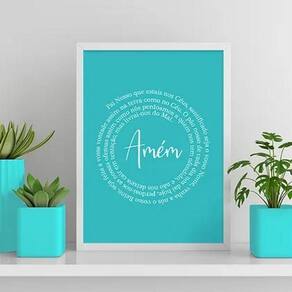 Quadro oração pai nosso fundo azul 33x24cm - com vidro