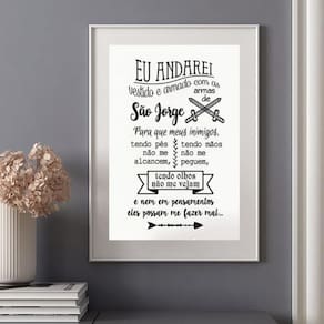 Quadro oração para são jorge - 60x48cm Cor: moldura preta Informações do produto tire todas as suas dúvidas no descritivo abaixo: decoração para quarto, sala, cozinha, escritório, área gourmet e muito mais. Chega de paredes vazias medidas - cada peça tem 60x48cm . Material do papel - papel fotográfico brilhante de altíssima resolução acabamento - todos os quadros são acompanhados de vidro para proteção da imagem. - moldura em madeira maciça na cor preta ou branca conforme produto escolhido e pendurador. - paspatur branco com 7cm de largura - os quadros são embalados de forma segura com plástico bolha com camada dupla de acordo com o tamanho dos quadros. Garantia - garantia de 3 meses. Meu quadro chegou. Como posso fixá-lo Você precisa apenas de um martelo e um prego, pois os quadros já vão acompanhados de penduradores. Esta é a forma mais indicada. Como posso limpar meu quadro A limpeza é feita como um móvel comum da sua casa. Apenas um pano seco ou espanador são suficientes para tal Ean: 7891234528933