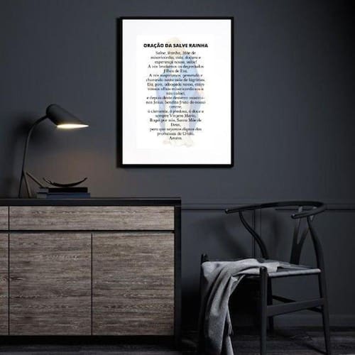 Quadro oração salve rainha - 60x48cm Moldura: madeira preta Informações do produto tire todas as suas dúvidas no descritivo abaixo: decoração para quarto, sala, cozinha, escritório, área gourmet e muito mais. Chega de paredes vazias medidas - cada peça tem 60x48cm . Material do papel - papel fotográfico brilhante de altíssima resolução acabamento - todos os quadros são acompanhados de vidro para proteção da imagem. - moldura em madeira maciça na cor preta ou branca conforme produto escolhido e pendurador. - paspatur branco com 7cm de largura - os quadros são embalados de forma segura com plástico bolha com camada dupla de acordo com o tamanho dos quadros. Garantia - garantia de 3 meses. Meu quadro chegou. Como posso fixá-lo Você precisa apenas de um martelo e um prego, pois os quadros já vão acompanhados de penduradores. Esta é a forma mais indicada. Como posso limpar meu quadro A limpeza é feita como um móvel comum da sua casa. Apenas um pano seco ou espanador são suficientes para tal Ean: 7894398032193
