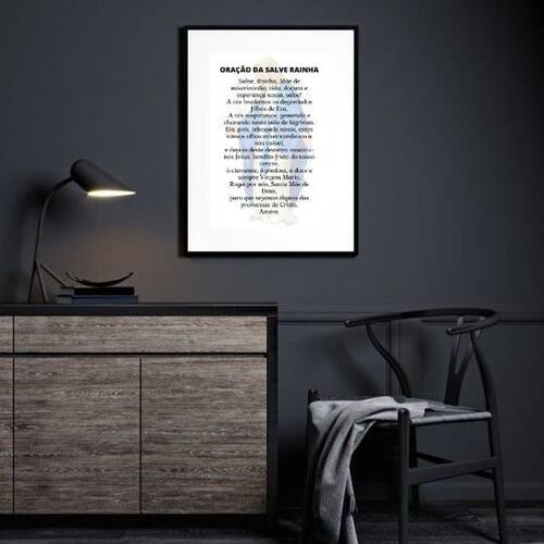 Quadro oração salve rainha - 60x48cm Moldura: madeira branca Informações do produto tire todas as suas dúvidas no descritivo abaixo: decoração para quarto, sala, cozinha, escritório, área gourmet e muito mais. Chega de paredes vazias medidas - cada peça tem 60x48cm . Material do papel - papel fotográfico brilhante de altíssima resolução acabamento - todos os quadros são acompanhados de vidro para proteção da imagem. - moldura em madeira maciça na cor preta ou branca conforme produto escolhido e pendurador. - paspatur branco com 7cm de largura - os quadros são embalados de forma segura com plástico bolha com camada dupla de acordo com o tamanho dos quadros. - de 3 meses. Meu quadro chegou. Como posso fixá-lo Você precisa apenas de um martelo e um prego, pois os quadros já vão acompanhados de penduradores. Esta é a forma mais indicada. Como posso limpar meu quadro A limpeza é feita como um móvel comum da sua casa. Apenas um pano seco ou espanador são suficientes para tal Marca: Não Informado