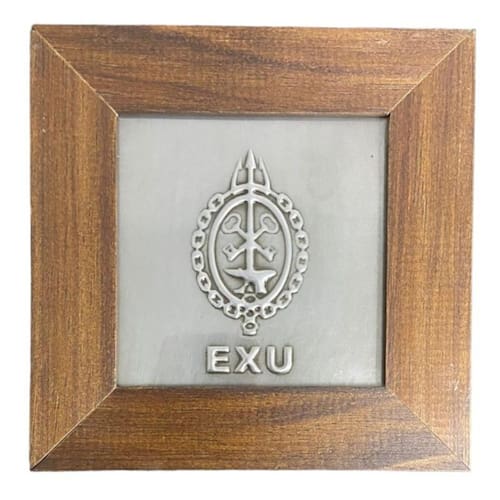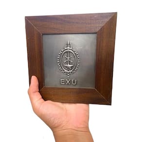 Quadro Orixá Exú Em Aço E Madeira Imbuia 12 X 12 Cm