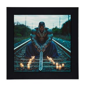 Quadro Orixá Ogum Moldura Preta 18 X 18 Cm