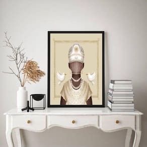 Quadro orixá oxalá - candomblé - 60x48cm Moldura: madeira branca Informações do produto tire todas as suas dúvidas no descritivo abaixo: decoração para quarto, sala, cozinha, escritório, área gourmet e muito mais. Chega de paredes vazias medidas - cada peça tem 60x48cm . Material do papel - papel fotográfico brilhante de altíssima resolução acabamento - todos os quadros são acompanhados de vidro para proteção da imagem. - moldura em madeira maciça na cor preta ou branca conforme produto escolhido e pendurador. - paspatur branco com 7cm de largura - os quadros são embalados de forma segura com plástico bolha com camada dupla de acordo com o tamanho dos quadros. Garantia - garantia de 3 meses. Meu quadro chegou. Como posso fixá-lo Você precisa apenas de um martelo e um prego, pois os quadros já vão acompanhados de penduradores. Esta é a forma mais indicada. Como posso limpar meu quadro A limpeza é feita como um móvel comum da sua casa. Apenas um pano seco ou espanador são suficientes para tal