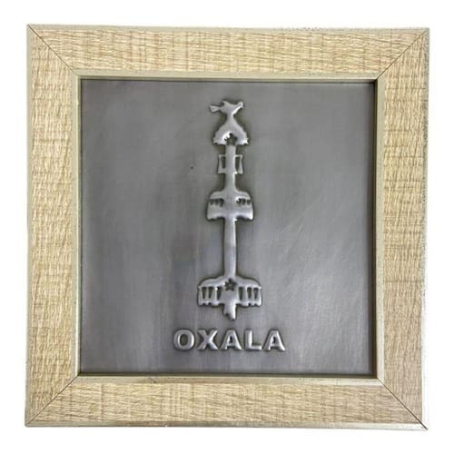 Quadro Orixá Oxalá Em Aço e Madeira Carvalho 16,5x16,5cm