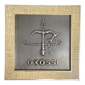 Encante seu espaço com a essência da natureza e da caça através deste magnífico quadro do Orixá Oxossi. Confeccionado com maestria, este quadro artesanal de 16,5x16,5cm une a força do aço à nobreza da madeira de carvalho, resultando em uma peça de beleza singular e profundo significado espiritual.