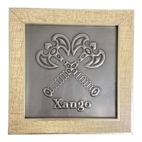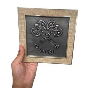 Quadro Orixá Xangô 2M Em Aço e Madeira Carvalho 16,5x16,5cm