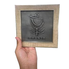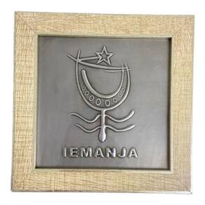 Quadro Orixá Yemanjá Em Aço e Madeira Carvalho 16,5x16,5cm
