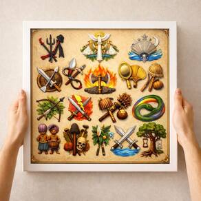 Quadro Orixás Símbolos 33x33cm Mold Preta Vidro