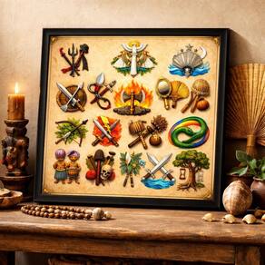 Quadro Orixás Símbolos 33x33cm Mold Preta