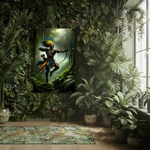 Quadro Oxossi Guerreiro Candomblé - 70x50cm - Cor: Moldura Preta