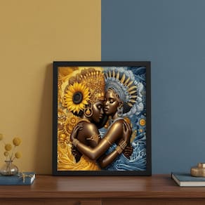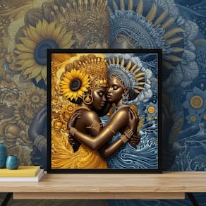 Quadro Oxum e Iemanjá 33x33cm Mold Preta Vidro