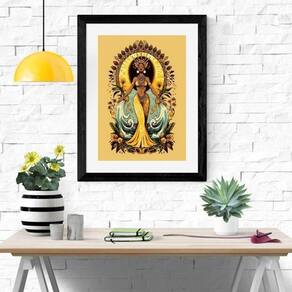 Quadro oxum rainha água doce - 60x48cm Moldura: madeira branca Informações do produto tire todas as suas dúvidas no descritivo abaixo: decoração para quarto, sala, cozinha, escritório, área gourmet e muito mais. Chega de paredes vazias medidas - cada peça tem 60x48cm . Material do papel - papel fotográfico brilhante de altíssima resolução acabamento - todos os quadros são acompanhados de vidro para proteção da imagem. - moldura em madeira maciça na cor preta ou branca conforme produto escolhido e pendurador. - paspatur branco com 7cm de largura - os quadros são embalados de forma segura com plástico bolha com camada dupla de acordo com o tamanho dos quadros. Garantia - garantia de 3 meses. Meu quadro chegou. Como posso fixá-lo Você precisa apenas de um martelo e um prego, pois os quadros já vão acompanhados de penduradores. Esta é a forma mais indicada. Como posso limpar meu quadro A limpeza é feita como um móvel comum da sua casa. Apenas um pano seco ou espanador são suficientes para tal