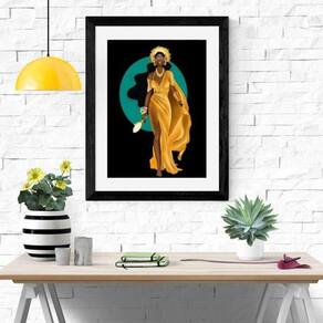 Quadro oxum silhueta - 60x48cm Moldura: madeira branca Informações do produto tire todas as suas dúvidas no descritivo abaixo: decoração para quarto, sala, cozinha, escritório, área gourmet e muito mais. Chega de paredes vazias medidas - cada peça tem 60x48cm . Material do papel - papel fotográfico brilhante de altíssima resolução acabamento - todos os quadros são acompanhados de vidro para proteção da imagem. - moldura em madeira maciça na cor preta ou branca conforme produto escolhido e pendurador. - paspatur branco com 7cm de largura - os quadros são embalados de forma segura com plástico bolha com camada dupla de acordo com o tamanho dos quadros. Garantia - garantia de 3 meses. Meu quadro chegou. Como posso fixá-lo Você precisa apenas de um martelo e um prego, pois os quadros já vão acompanhados de penduradores. Esta é a forma mais indicada. Como posso limpar meu quadro A limpeza é feita como um móvel comum da sua casa. Apenas um pano seco ou espanador são suficientes para tal