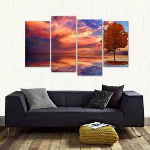 Quadro Paisagem Árvore Sala Escritório Em Tecido 4 Peças 1