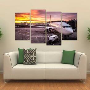Quadro Paisagem Avião Boeing 737 Escritório Tecido 4 Peças 1