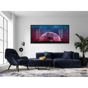 Quadro Paisagem Da Lua Sala Escritório 130x60 Moldura Preta 2x2