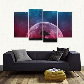 Quadro Paisagem Da Lua Sala Escritório Em Tecido 4 Peças 1